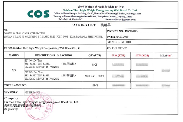 西奧輕質節能墻板出口裝箱單