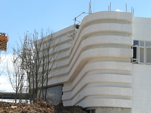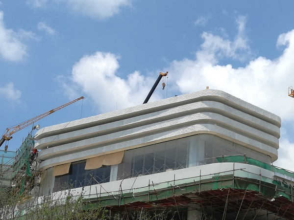 走進中南春風南岸項目,彩色GRC構建的穹頂、雙曲面、單弧面、圓形等各種流線形狀雖然還沒有全部完工,但其仿石材紋理的效果,讓項目更添自然之美,已然使人感覺眼前一亮。