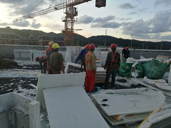 該項目彩色GRC構件全部由貴州西奧生產及安裝,結構復雜、技術含量高,施工難度大是貴州西奧該項目技術上的一次重大突破。恒大集團到貴州西奧生產基地考察時這樣評價:能生產出這樣高質量的的彩色GRC產品,目前國內也沒幾家能做得到,這說明貴州西奧還是很厲害的,也是來之前是沒有想到的。