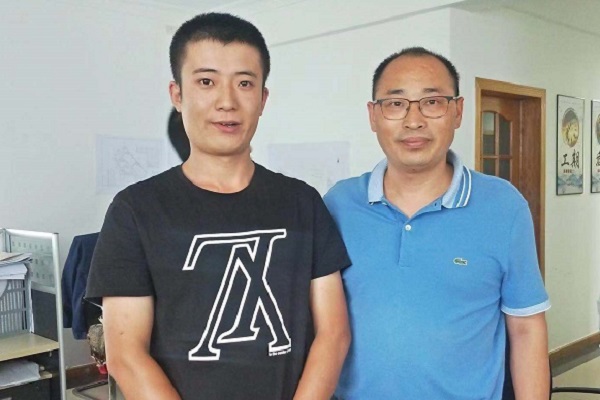 表彰會上,突出員工王凱與西奧董事長楊景龍合影