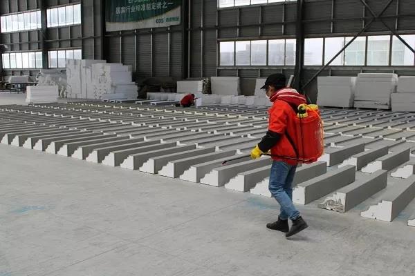 2月18日,在復工復產后的貴州西奧生產基地,多條生產線已開始有序運轉,石膏砂漿、墻板、GRC/EPS構件等產品按計劃進行生產。