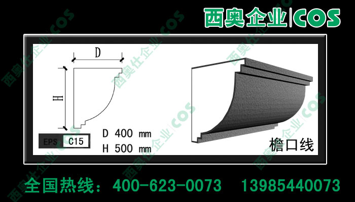 西奧仕(COS)EPS裝飾線條、構(gòu)件是由脫模B2級(jí)防火的聚笨乙烯為主體,粘貼耐堿玻纖網(wǎng)格布,加以特殊的粘結(jié)外保護(hù)層復(fù)合而成