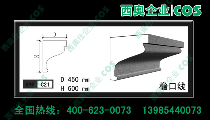 西奧仕(COS)EPS裝飾線條、構(gòu)件是由脫模B2級(jí)防火的聚笨乙烯為主體,粘貼耐堿玻纖網(wǎng)格布,加以特殊的粘結(jié)外保護(hù)層復(fù)合而成
