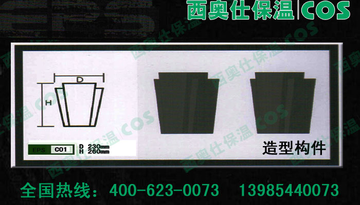 西奧仕(COS)EPS裝飾線條、構件是由脫模B2級防火的聚笨乙烯為主體,粘貼耐堿玻纖網格布,加以特殊的粘結外保護層復合而成