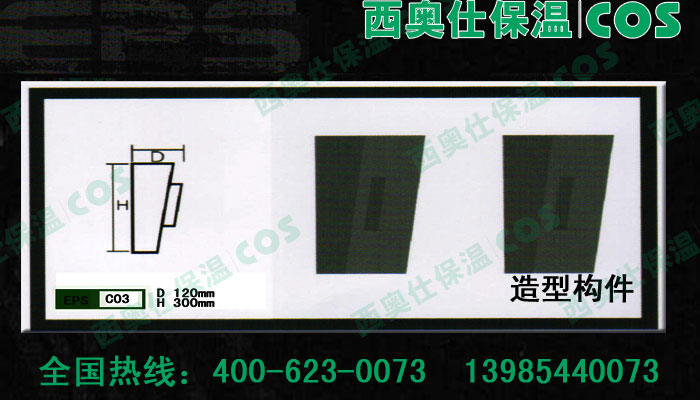 西奧仕(COS)EPS裝飾線條、構件是由脫模B2級防火的聚笨乙烯為主體,粘貼耐堿玻纖網格布,加以特殊的粘結外保護層復合而成