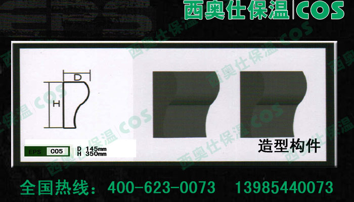 EPS裝飾線條是一種新型的外墻裝飾線及構件,它能完全替代傳統的水泥(GRC)構件,更適用于安裝在外墻EPS、XPS保溫的墻體上,既能體現歐式、古典、高雅的裝飾風格,又能保證主體建筑外墻不出現冷、熱橋效應;特別對于高層建筑的歐式風格,安裝水泥構件非常困難,工期又長,而且時間一長會出現裂縫,耐久性差,因此采用西奧仕(COS)EPS裝飾線條、構件,安裝方便、經濟、耐久性長。 西奧仕(COS)EPS裝飾線條、構件是由脫模B2級防火的聚笨乙烯為主體,粘貼耐堿玻纖網格布,加以特殊的粘結外保護層復合而成